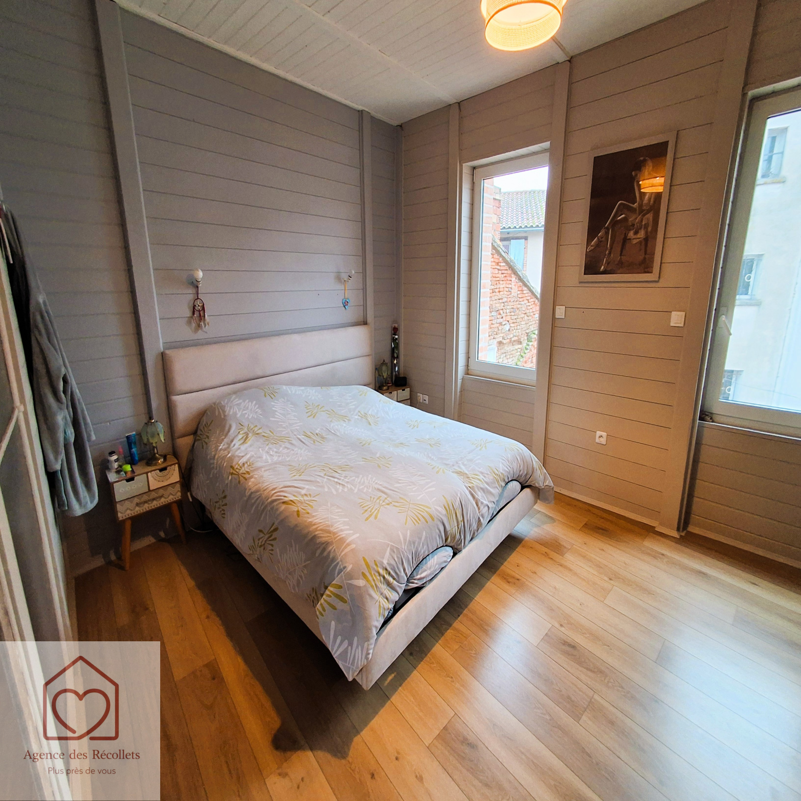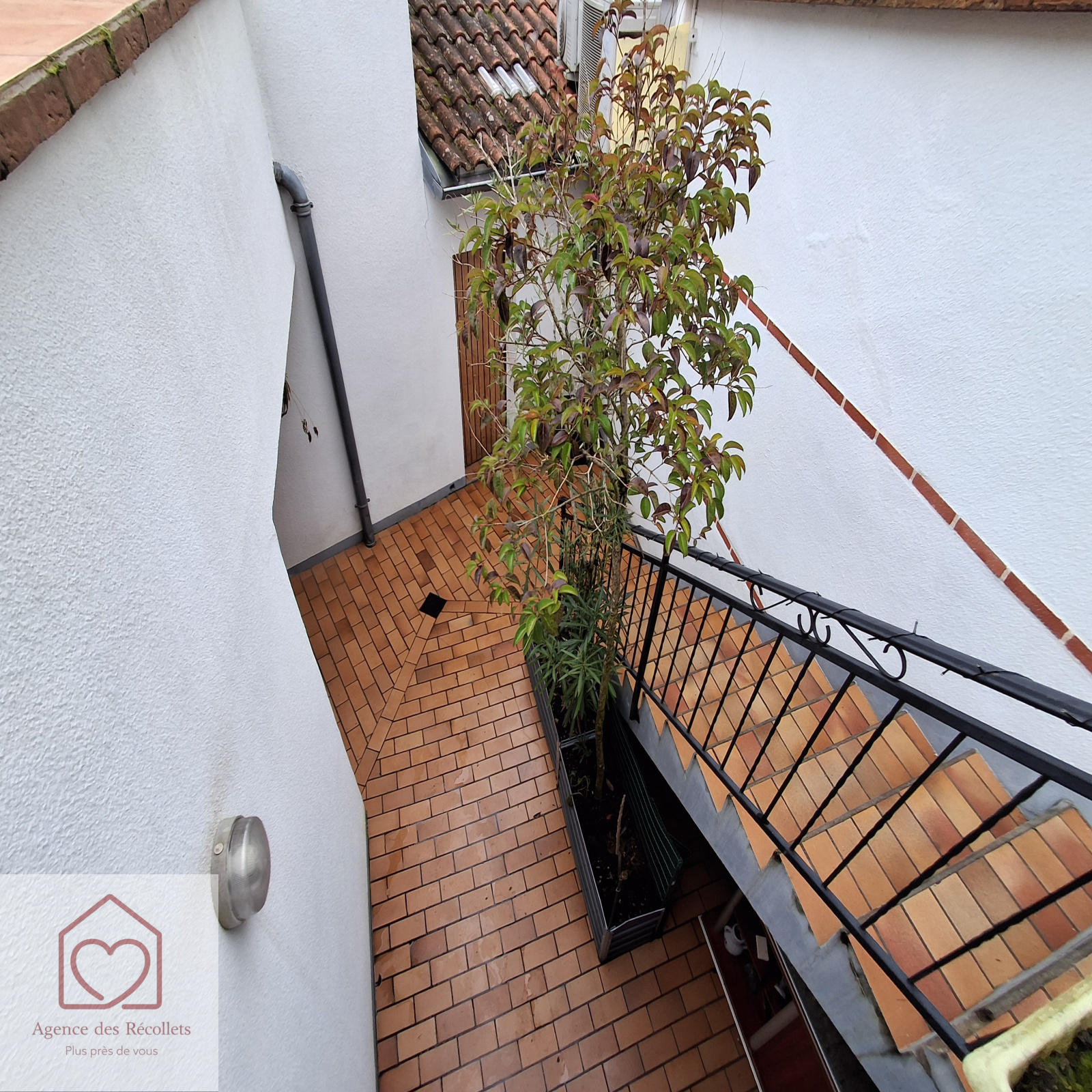 Elle dispose de trois chambres, ainsi que de deux garages et d’une cour intérieure rare en cœur de ville.
